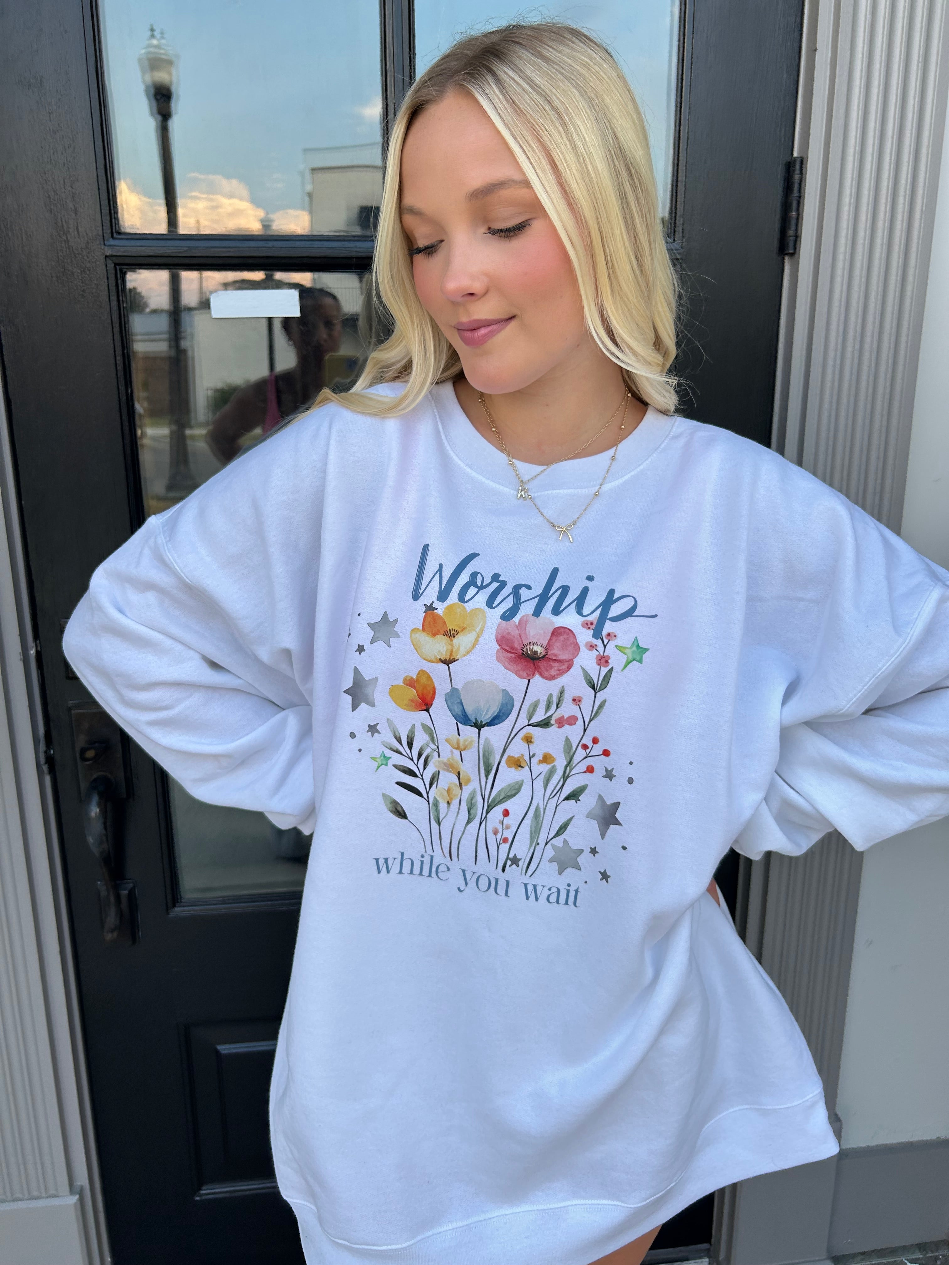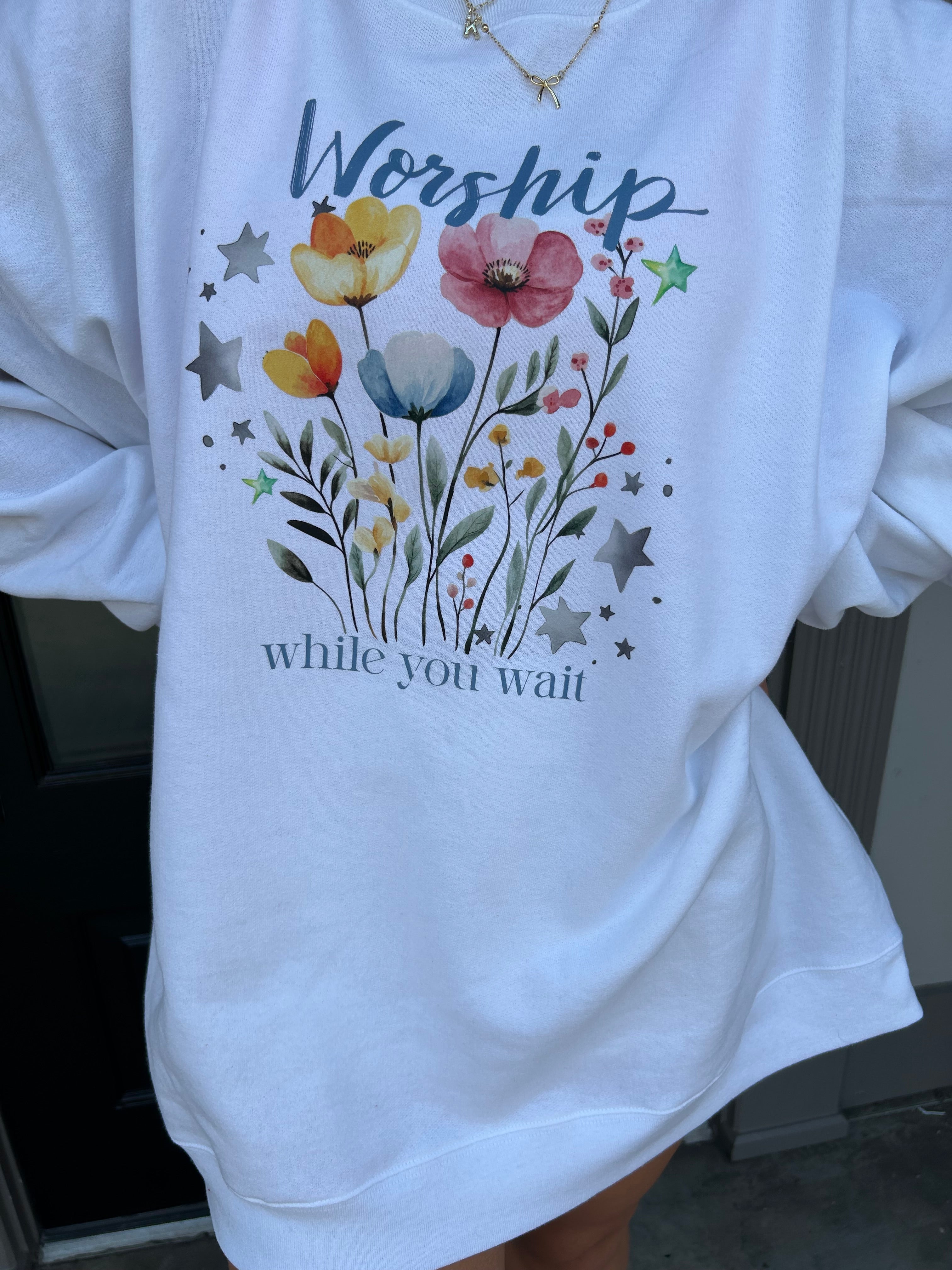 Last stock! Product form Worship while you wait sweatshirt $39.00 Size S M L XL XXL 2 in stock Quantity Add to cart